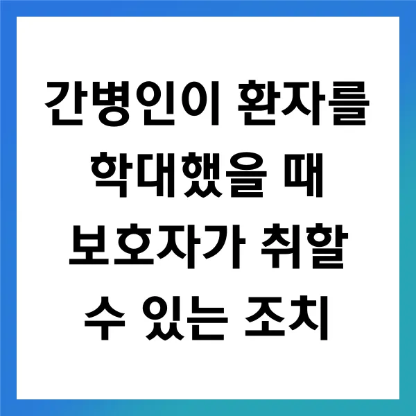 환자가 감당할 수 없는 상황 에 처했을 때 보호자로서의 역할 은 막중합니다. 학대의 초기 징후 를 알아차리고 즉각적인 조치 를 취하는 것이 중요합니다. 법적 절차를 통해 책임을 물으며 동시에 재발 방지를 위한 시스템 을 강화해야 합니다. 전문가의 자문 을 구하고 심도 있는 대처방안 을 마련하는 것이 필요합니다. 상황이 반복되지 않도록 적극적으로 대응함으로써 환자의 안전을 보장하고 보호자로서의 책임 을 다하십시오. 보호자의 신속하고 효과적인 개입 은 환자의 건강과 안전 에 직접적인 영향을 미칩니다. 직면한 현실에 불편함을 느낀다 해도, 이러한 조치는 환자의 권리를 지키는 중요한 발걸음 입니다.