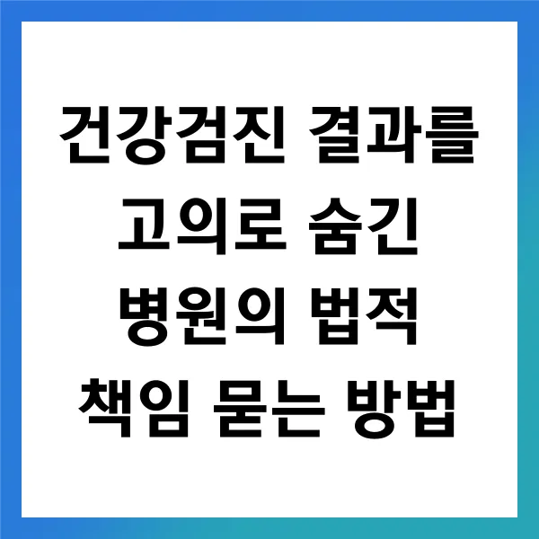 건강검진 결과를 고의로 숨긴 병원에 대한 법적 대응 절차 를 진행하는 것은 생각보다 다양한 절차와 시간이 요구 될 수 있습니다. 하지만 환자의 건강권이 침해 되었다면 정당한 법적 조치를 취하여 병원의 책임을 묻는 것 이 중요합니다.