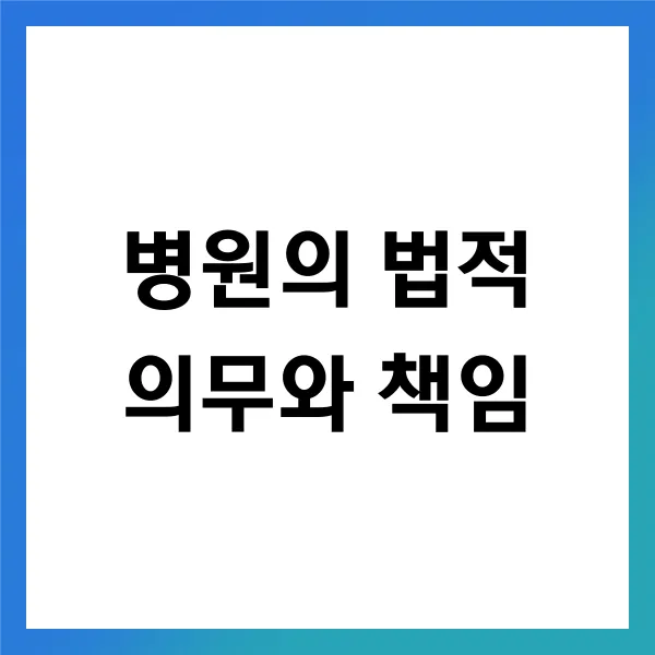 이처럼 병원의 법적 의무와 책임은 단순한 의료 서비스 제공을 초월하여, 환자의 생명과 건강을 보호하는 중요한 기능 을 담당합니다. 병원의 법적 책임을 철저히 이행함으로써, 보다 안전하고 신뢰할 수 있는 의료 환경 을 구축할 수 있습니다. 이는 결국, 국민 건강 증진과 의료 시스템의 안정 으로 이어지며, 법적 분쟁을 미연에 방지하는 지름길이 될 수 있습니다.