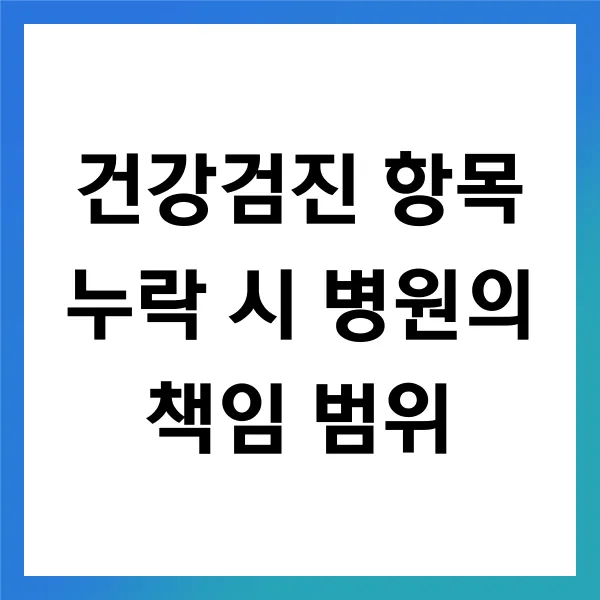 건강검진에서 항목 누락 은 단순한 착오가 아니라 환자의 건강에 중대한 영향을 미칠 수 있는 중요한 문제 입니다. 병원은 이러한 오류를 방지하기 위해 철저한 검진 프로세스를 구축하고 , 법적 책임을 인지하여 신뢰성을 높여야 합니다. 환자 역시 자신의 건강 상태를 주기적으로 모니터링 하고, 필요한 검사를 빠짐없이 받는 것이 중요 합니다. 문제가 발생했을 때 는 빠른 대응과 적절한 조치를 통해 건강상의 피해를 최소화할 수 있습니다. 모든 이해당사자가 협력하여 보다 안전하고 효율적인 건강검진 시스템을 만드는 것이 바람직합니다.