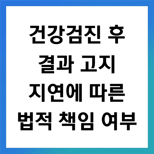 건강검진 결과의 고지는 수검자가 자신의 건강 상태를 적시에 파악하고 필요한 의료 조치를 취하는 데 필수적입니다. 결과 고지가 지연될 경우 다양한 문제와 책임 이 발생할 수 있습니다. 이는 개인의 건강 관리 뿐만 아니라 의료 기관의 운영 및 법적 측면에서도 중요한 영향 을 미칩니다.