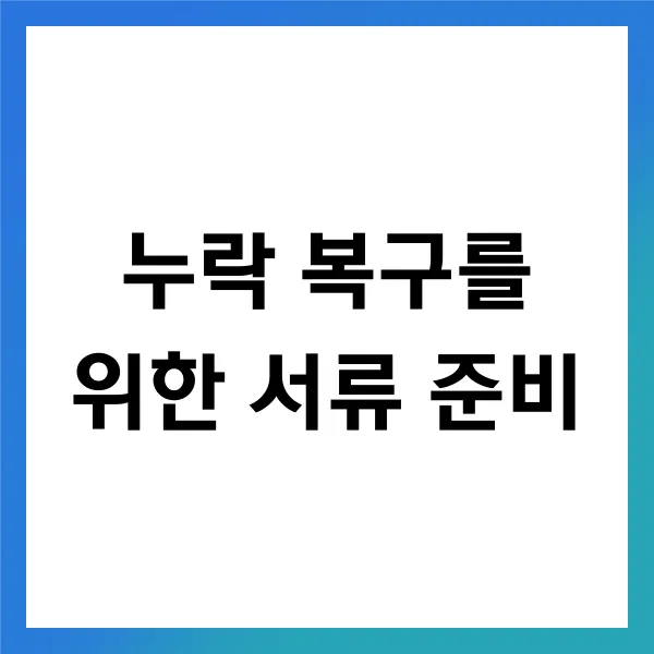마지막으로, 구체적인 신청서 를 작성해야 합니다. 누락 사실을 신고하고 복구를 요청하는 이 신청서는 매우 중요하며, 정확하고 명확한 정보가 기재되어야 합니다. 공단에서 제공하는 양식을 사용하거나 방문시 요청하여 해당 문서를 직접 작성할 수 있습니다. 작성할 때는 불명확한 부분이 없도록 주의하고, 필요 시에는 담당자에게 구체적인 질의를 통해 정보를 보강하시기 바랍니다.
