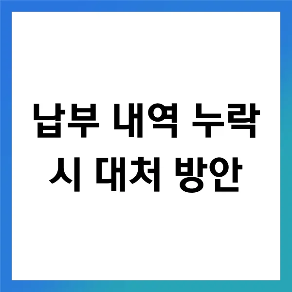 문제의 근본적인 원인을 분석하고 이를 바탕으로 예방 조치를 마련해야 합니다 . 예를 들어, 납부 내역을 정기적으로 검토하는 습관을 들임으로써, 추후 비슷한 상황 발생 시 신속하게 대응할 수 있습니다 . 또한, 자동이체 시스템을 활용하면 누락의 위험을 줄일 수 있습니다 !