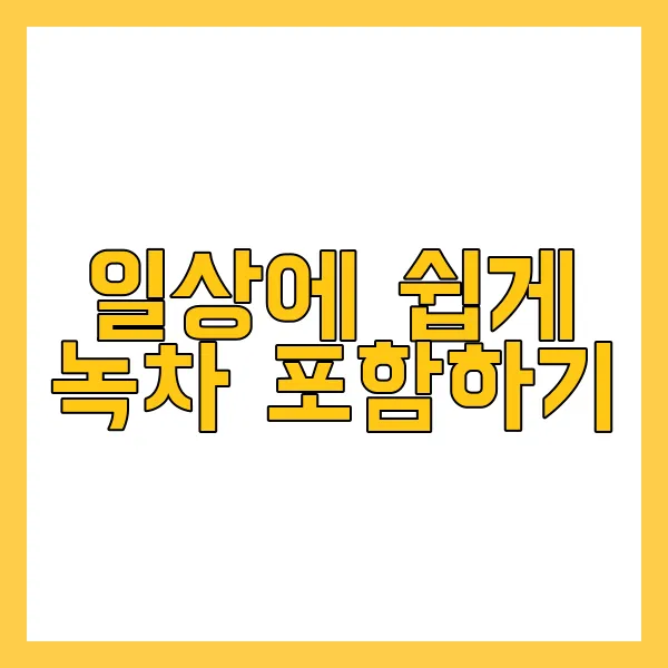 두 번째로, 점심시간에 드시는 샐러드나 요리에 녹차 가루를 활용해 보세요. '말차'라는 분말 형태의 녹차를 사용하면 훨씬 간편하게 섭취할 수 있습니다. 샐러드 드레싱에 섞거나 스무디에 넣어 영양가를 높이는 방법도 좋습니다. 이 방법은 단순히 맛도 좋지만, 항산화 성분을 더할 수 있어 하루 섭취량을 늘리는데 도움을 줄 수 있습니다. 🍵 이를 통해 하루에 약 300mg의 카테킨을 섭취할 수 있습니다. 이는 심혈관 건강에도 긍정적인 영향을 미친다는 연구 결과도 있습니다.
