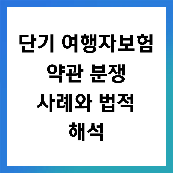 이처럼, 단기 여행자보험과 관련된 분쟁은 복잡한 법적 요건을 동반합니다. 따라서 충분한 정보와 이해를 바탕으로 행동 하는 것이 중요합니다. 여행을 계획하는 소비자는 이러한 법적 요건을 숙지하고, 필요한 절차를 준수하여 자신을 보호할 수 있어야 합니다.