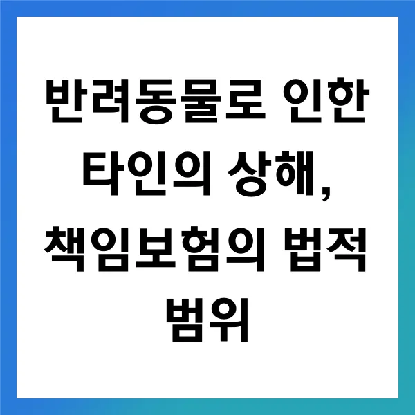 반려동물로 인한 타인의 상해에 대한 법적 책임은 매우 중요 하며, 이를 이해하는 것은 필수적입니다 . 다양한 사건 유형을 알고, 책임보험의 필요성과 이점을 인식함으로써, 우리는 예기치 않은 상황 속에서도 안전을 확보 할 수 있습니다. 법적 책임의 정의와 범위를 정확히 알고 대처하는 것은 우리 모두에게 큰 도움이 됩니다. 사고 발생 시, 신속하고 올바른 조치를 취하는 것이 중요 합니다. 반려동물과 함께하는 생활에서, 책임 있는 주인이 되기를 기대합니다.