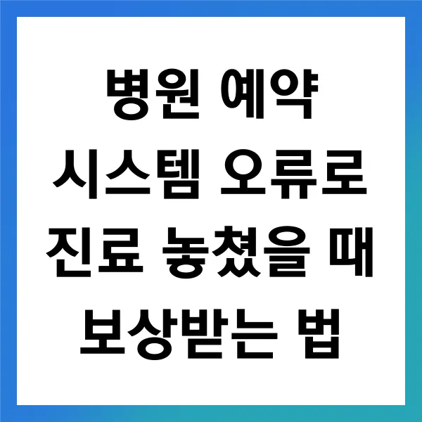 병원 예약 시스템의 오류로 진료를 놓쳤을 때 가능한 보상을 받기 위해 가장 먼저 해야 할 일은 병원 정책을 꼼꼼히 검토하는 것입니다. 그리고!! 간단히 얘기하자면 말이죠~ 모든 병원마다 고유의 정책이 존재하기 때문에, 이에 대한 충분한 이해가 필요 합니다. :>