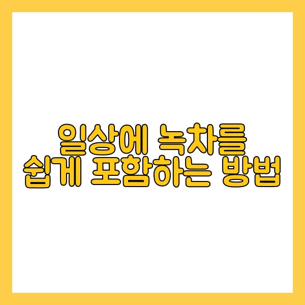 일상에서 녹차를 쉽게 포함하는 다양한 방법은 여러분의 건강과 대사를 활성화하는 데 큰 도움이 됩니다. 매일 조금씩 녹차의 혜택을 누려보세요. 다양한 맛과 향을 즐기면서 건강을 챙기는 것이 이렇게 간단할 수 있습니다!