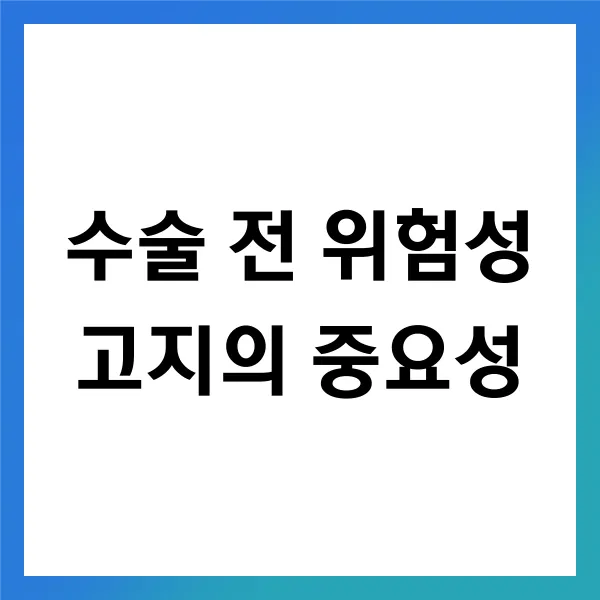 의료 환경에서 수술을 진행하기 전에 환자에게 위험성을 고지하는 것은 매우 중요한 절차 입니다. 이 과정은 의료진과 환자 간의 신뢰를 구축 하고, 환자가 자신의 의료 결정에 대한 충분한 정보를 바탕으로 선택 할 수 있도록 돕습니다.