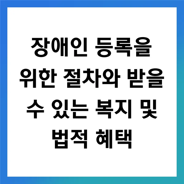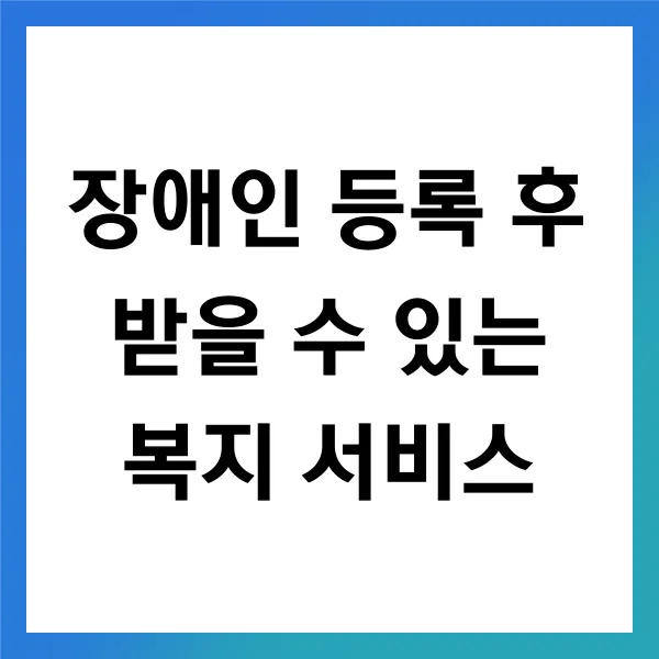 장애인 등록을 하신 후에는 여러 가지 유익한 복지 서비스와 법적 혜택들을 통해 삶의 질을 향상시킬 수 있습니다. 이러한 서비스들은 등록 이후 제공되는 것이므로, 등록 절차의 중요성을 무시할 수 없습니다. 여러 가지 통계와 연구에 따르면, 장애인 복지 서비스는 장애인의 사회 참여를 더욱 확대시킬 수 있는 효과가 있습니다!