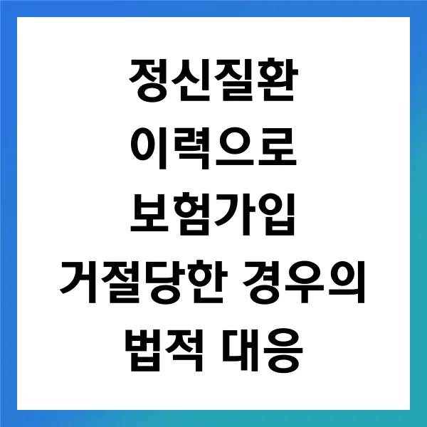 따라서, 정신질환 이력으로 보험 가입 거절을 당한 경우에는 법적 대응이 필수적이며, 이를 위한 절차를 체계적으로 숙지하고 준비하여 자신의 권리를 찾는 것이 중요합니다.